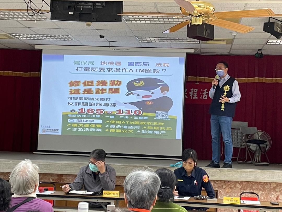 本次會議由第六分局各組室主管及轄區所長列席綜合座談,會中宣導當前治安、交通、反毒、打詐、婦幼等重點警政工作,並播放內政部警政署署長錄製防詐影片,提醒民眾詐騙集團詐騙手法,詐騙集團利用各種管道及方法,伺機騙取市民的金融帳號、密碼,或是叫你到自動櫃員機去操作轉帳,或接到不明電話要你去匯款或轉帳,這些都是詐騙集團的手法,所以接到不認識的電話,切記要〝1聽2掛3查證〞的原則,利用110報案、165反詐騙專線或向派出所報案,切勿上當受騙。並針對用路人路權、機慢車輛兩段式左轉、車輛行駛優先順序及家庭暴力、跟蹤騷擾、失蹤人口等重點提示。