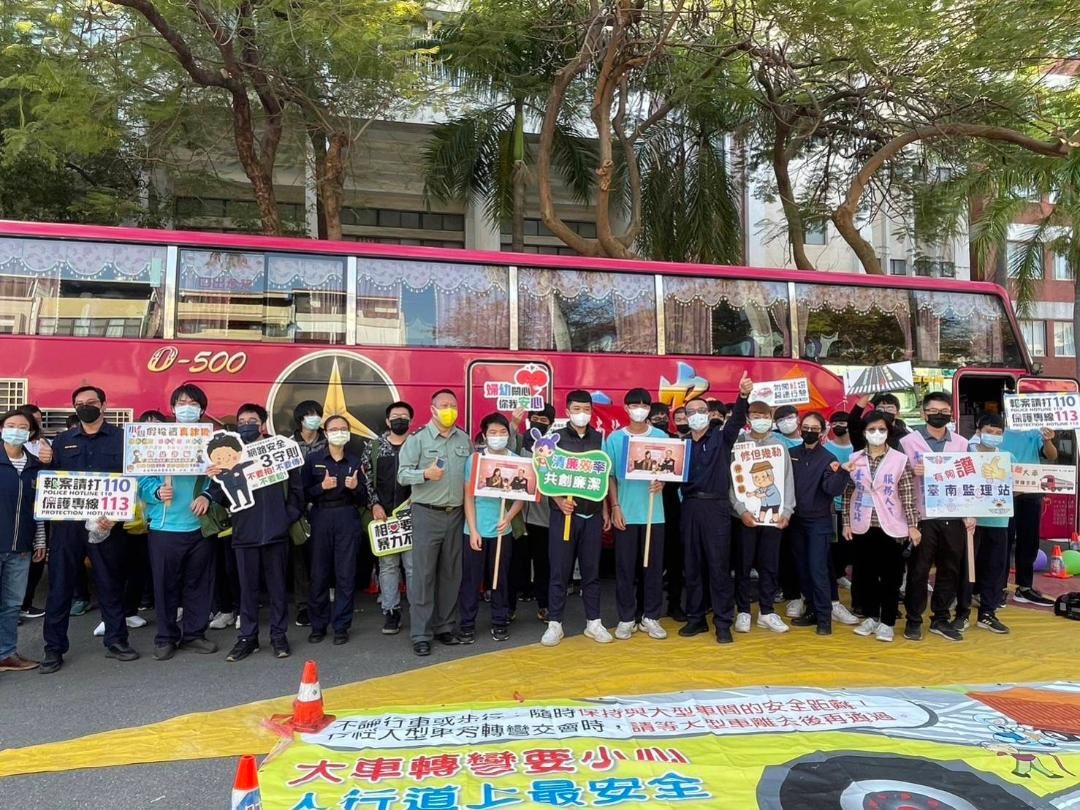 第二分局也與臺南監理站一同運用大型校車,辦理大型車內輪差實地操作,以氣球及三角錐劃設內輪差範圍,當校車轉彎時氣球一一爆裂,場景讓學生們震懾驚呼「如果是人車捲入內輪差範圍,後果不堪設想」,並輔以實際大型車視野死角,讓每位師生知道避開死亡危險位置,遠離及禮讓大型車先行。