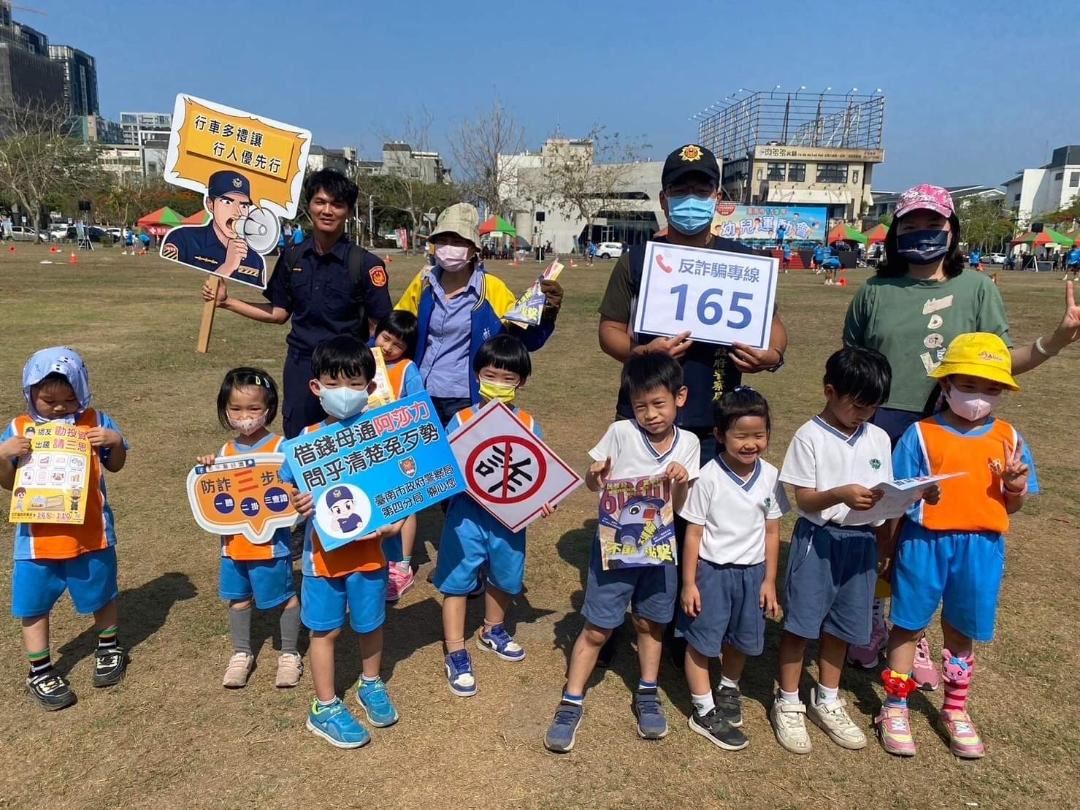 【記者尤華恩/台南報導】臺南市政府警察局自5月1日起,為期1個月,配合內政部警政署辦理「取締不停讓行人執法專案勤務」,為培養用路人遵守「路權」與「禮讓行人」觀念。藉此機會,於4月29日至「112年臺南市幼兒運動會」宣導路口停讓行人等交通觀念及反詐騙等相關法規及知識,強化家長及學童路口交通安全及反詐騙觀念,將路口安全觀念從小紮根,讓學童學習遵守交通規則及分享目前常見詐騙手法給家長。
