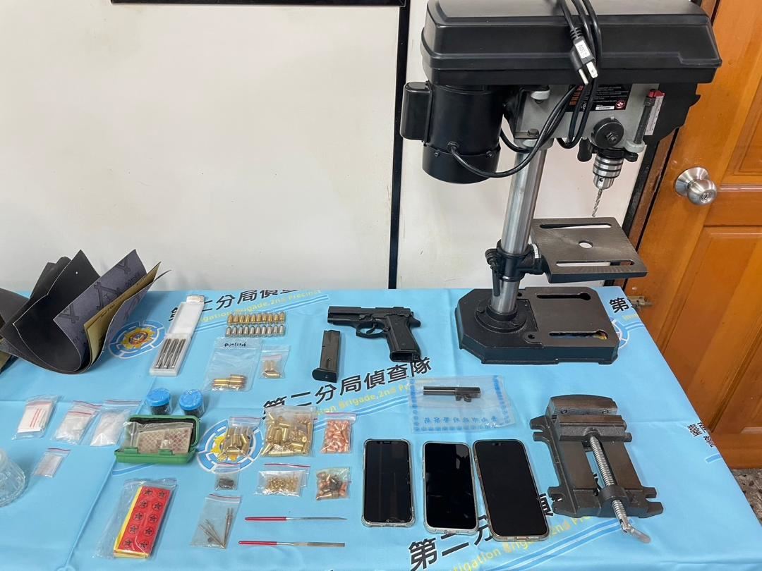 【記者尤華恩/台南報導】臺南市政府警察局第二分局偵查隊於今年4月初偵辦毒品案件中,於犯嫌身上起獲有槍枝拆解零件,案經專案小組鍥而不捨,逐一釐清槍枝改造之來源及鎖定犯嫌,並經一個多月之跟監掌握犯嫌動向,於3日下午2時許聲持多張搜索票,兵分多路奔赴臺南市新化區某民宅查獲顏姓犯嫌(45歲、新化人、有毒品槍砲資料),並於床邊之隨身背包內起獲改造手槍1枝、子彈28顆、槍械改造工具鑽床等器具一批及毒品海洛因3.79公克、安非他命19.26公克等證物;另又在東區某汽車旅館內查獲涉嫌槍枝改造共犯黃姓犯嫌(36歲、安南區人、有毒品槍砲資料),在其身上起獲安非他命0.7公克,且發現旅館房內黃嫌之同住李姓女友(女、30歲、安南區人、有詐欺、毒品資料)也因涉嫌洗錢防制法經臺南地方檢察署發布通緝在逃(112年3月底發布通緝)。全案調查後將顏、黃兩嫌依涉嫌槍砲彈藥刀械管制條例及毒品危害防制條例調查送辦,並將持續溯源追查槍彈來源;另李姓通緝犯則解送地檢署歸案。