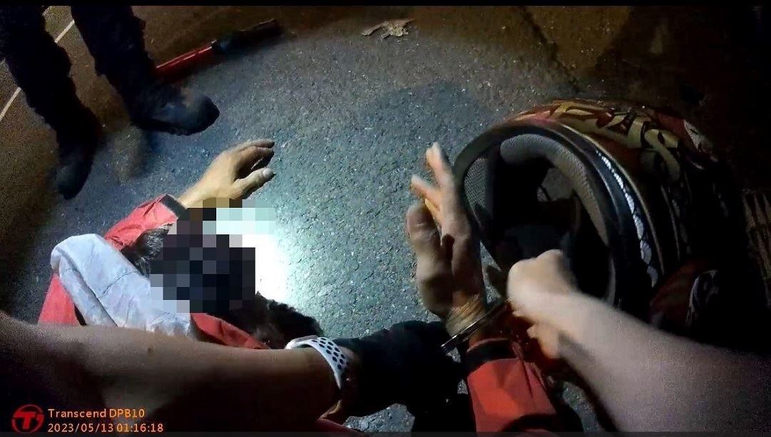 【記者尤華恩/台南報導】臺南市政府警察局保安警察大隊特殊任務編組吳姓、郭姓隊員於5月13日凌晨1時許巡邏勤務,行經臺南市南區濱南路附近魚塭旁道路,發現一部紅黑色普通重機車以時速破百公里飆速行駛,為防止渠發生危險及保護其他用路人生命財產安全,警方遂立即上前鳴笛示警,並以廣播器警示其靠邊停車,將渠攔截後警方為了解其身分,循線發現該洪姓駕駛人(男,62年次)竟同時遭臺中地方法院檢察署及臺中地方法院分別因毒品危害防制條例、洗錢防制法發布通緝中,吳姓隊員立刻要求洪嫌蹲下配合逮捕,沒想到洪嫌消極不配合,開始支吾其詞、並突然向一旁走開,吳姓、郭姓隊員見攔查地點左有大馬路,右有漁塭,為避免洪嫌逃脫發生立即危險,旋即施以強制力將其壓制在地上銬逮捕,並帶返隊部偵辦,後經採集洪嫌尿液進行毒品初篩,呈二級毒品安非他命陽性反應。本案分別依發布通緝之管轄單位解送臺中地院及臺中地檢歸案,施用二級毒品安非他命案依法函送,至於洪嫌疑似毒駕行為, 將俟毒品檢驗確定後,再依法偵處。