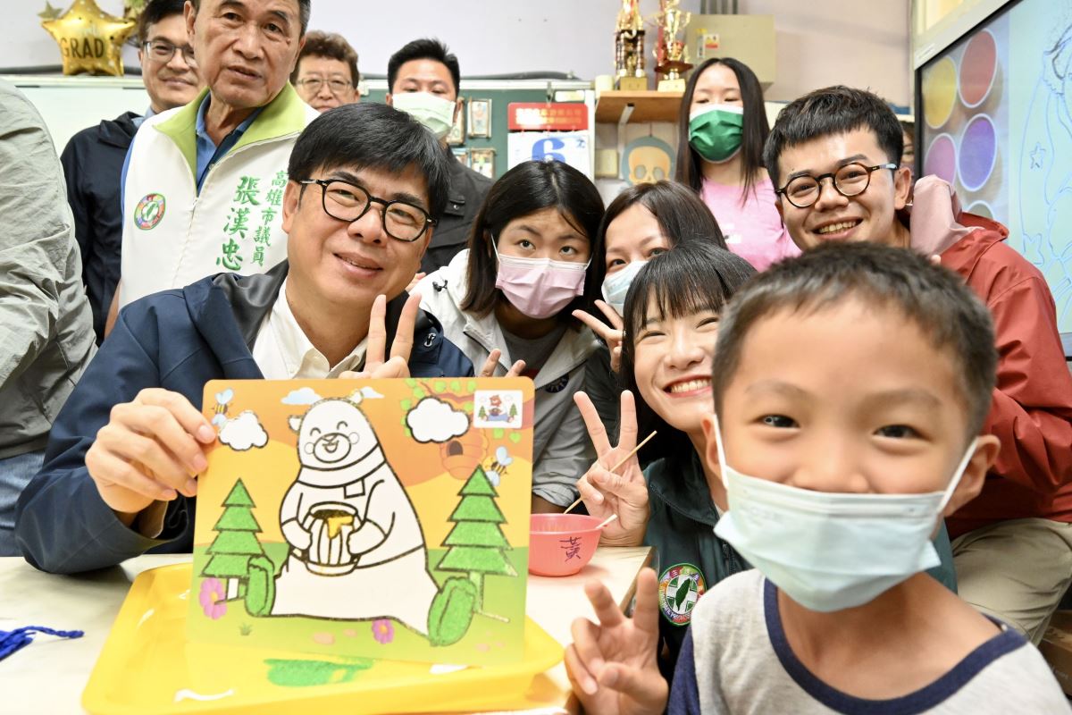 高雄市公立幼兒園自今年7月暑假起,全面開辦延長照顧服務,1人即開班,家長繳費每小時不超過50元,嘉惠超過1萬2千名幼兒;同時也擴大辦理國中、國小及學前身障學生暑期照顧專班,落實家長需求開班照護。市長陳其邁(6)日上午至鳳山區中正國小視察暑期開課情形,現場不僅與師生溫馨互動同樂,也致贈孩童精心準備的禮物,祝福大家快樂學習、暑假愉快。體貼育兒家庭、關心學童教育,陳其邁強調,課後以及暑假有關公幼延長照顧1人就開班,每小時最多50元收費,針對寒暑假仍需工作的家長,盼透過全面開班減輕家長負擔,讓孩童開心學習,家長安心、放心。高雄市政府長期關注身心障礙學生與家長的需求,首創全國之先,全面開設國中以下專屬身障生的課後照顧專班,每學年預計投入3500萬經費,嘉惠近千名身障生家庭;公幼延長照顧部分挹注5,700萬元,近1萬2千名幼兒受惠,提供幼兒豐富多元的統整性活動,例如體能活動、美感體驗、遊戲互動、語文學習等,讓家長安心兼顧工作與育兒。對於推動身心障礙學生課後照顧班,特教生家長王先生特別向市長表達感謝,不僅減緩父母課後及寒暑假安置孩子的困擾,也讓特教生暑假期間學習不中斷;家長林小姐則分享本身為雙薪家庭,透過公幼延長照顧服務,多元有趣的課程讓孩子學習收穫良多,家長安心工作之際也能掌握孩子學習狀況,而親民的銅板價的費用,實質減輕經濟負擔。陳其邁與教育局長謝文斌、立委許智傑,以及諸多地方民意代表等人,先後與孩童跳圈圈闖關、與特教生進行沙畫課程,透過色彩辨識、手作DIY鍛鍊手指靈活性和精細動作能力,促進手眼協調發展與提升專注力,市長頻頻稱讚大家的表現,也一一發送貼紙,從市長手中接過貼紙的學生們喜悅不已,齊聲高喊「謝謝市長!」,氣氛歡樂溫馨。教育局表示,除提供學生完整課照服務外,針對身障課照班及公幼延長照顧人員權益,皆依規定支應鐘點費,另得依提供服務情形向教育局申請敘獎,身障課照班如有需求亦可申請教助相關補助。教育局指出,專班不僅是一項教育計畫,更是市府關注下一代、照顧弱勢學生的態度,將持續投入教育資源,提供更多服務與創新,同時也感謝老師無私的付出,確保每個孩子都能夠獲得平等學習機會;期待陪伴孩子度過最美好暑期,提供更多支持與關愛。