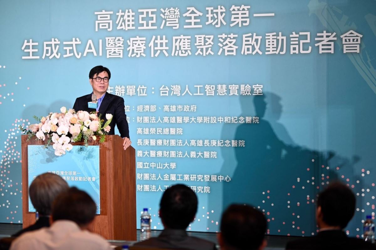 高雄市長陳其邁(15)日出席「全球第一個生成式AI醫療供應聚落啟動」記者會,並與「高雄聯合學習智慧醫療聯盟」一同宣布生成式AI醫療聚落在高雄亞灣區正式成立,他表示,高雄4大頂尖醫學中心以聯盟學習的方式打破醫院資料庫的建置共同合作,資料庫的整合也扮演了非常重要的角色,台灣人工智慧實驗室(Taiwan AI Labs)在經濟部支持之下也獲得A+計畫,相信台灣的醫療與AI技術,未來在智慧醫療的領域將非常具競爭力。陳其邁感謝經濟部的大力支持,未來A+計畫是要打世界盃的,需要中央地方共同合作支持,能夠由Taiwan AI Labs擔任技術平台,結合4大醫學中心來進一步擴大智慧醫療的應用,從疫情期間即開始協助多項防疫工作,包括醫療影像、疾病預測、診斷、治療,有關AI的應用其實都已在我們周遭身邊,相信未來5年內台灣在智慧醫療領域的應用絕對可在全球具有舉足輕重的角色。陳其邁表示,AI很快就影響到我們生活,從AI到OPEN AI發展速度都很快,隨著半導體製程、技術、巨量運算等軟體發展,在因應快速變遷對於資料的分析及運算,發展速度越來越快,他也認為高雄後發先至,跨領域的學習是我們在發展智慧醫療非常成功的地方,未來要當智慧醫療的領先者,市府打破4大醫學中心的界線,助攻媒合技術平台和醫學中心在生成式智慧醫療領域的運用,期許大家共同努力,以此提升市民生活與醫療品質。記者會現場展示聯盟於亞灣之豐碩成果,同時廣邀相關需求科別加入協作,共同建置符合市民需求之臨床AI產品。台灣人工智慧實驗室(Taiwan AI Labs)表示,其運用其尖端的AI科技驅動,結合聯盟建立了生醫領域的醫療聯邦式資料治理機制,通過多中心的驗證場域確保AI生成結果的可信度,為國人提供高品質的醫療服務。