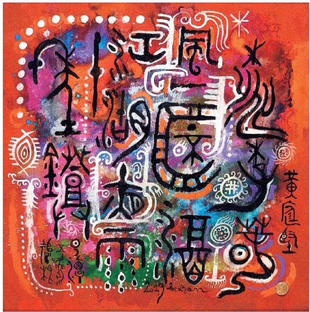 圖說:黃豆北的作品以甲骨文字為主體,並將文字與抽象畫統合為一,並保留古文字傳意功能,展現其鮮明且可朗讀的抽象畫。