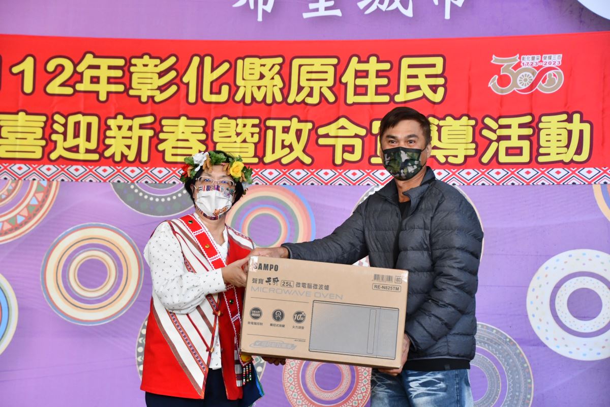 繫橋梁,彰化縣政府12日在原住民生活館辦理「112年彰化縣原住民團圓賀喜迎新春暨政令宣導活動」,彰化縣長王惠美、立委鄭天財、縣議員陳榮妹等人與會與原住民朋友同歡。王縣長期望藉由活動讓原住民朋友們歡聚聯誼,同時也能夠了解到縣府對原住民朋友所做的各項福利措施。縣府對原住民的就業權益與安全保障措施也持續在推動,例如馬上關懷的「急難救助」、「中低收入戶」的生活扶助、原住民建購及修繕住宅補助與原住民族綜合發展基金貸款,期許原住民鄉親都能受到最好的照顧服務。
