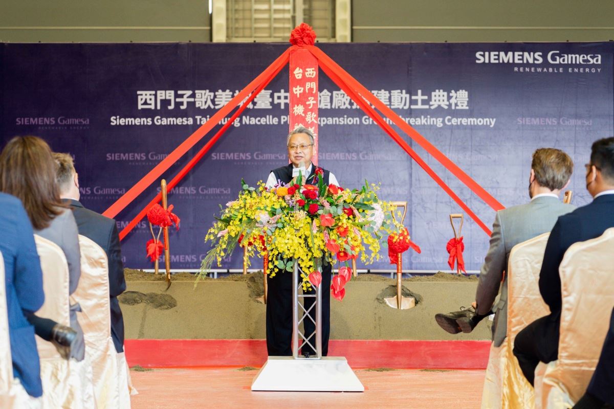 全球最大風力發電機製造商西門子歌美颯離岸風力再生能源股份有限公司不僅是台中港工業專區(II) 首間建廠業者,也成為全國首家投入新世代離岸風機零組件生產的風機設備商,(21)日於台中港舉辦新世代14MW機艙組装廠擴建動土典禮,預估生產的機艙年產能可達2GW,所生產的離岸風機機艙將供應海龍離岸風電計畫、第三區塊開發風場及亞太區專案使用。行政院副院長沈榮津、台中市副市長令狐榮達及各界代表皆到場共襄盛舉,共同見證台中市離岸風電產業邁入新的里程。