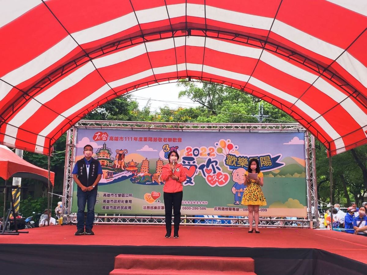 2022年「愛你久久 歡樂重陽」左營區重陽敬老聯歡活動,去年因疫情影響停辦,今年恢復舉辦,左營區因新舊部落,總共辦理二場重陽敬老活動。本次活動於9月24~25兩日於運動發展局左營活動中心、新莊國小熱鬧舉行,今天舊部落在左營活動中心是第一場。本次活動《舞台區》除了可以欣賞精彩的社區歌舞表演、樂團樂器演奏,並在活動中穿插豐富的摸彩活動,有50吋、43吋、32吋液晶電視、冰箱、鍋具及禮券等多項獎品,希望阿公阿嬤們來到活動現場「逛攤位、看表演、抽大獎」,輕輕鬆鬆、歡歡喜喜度過一個難忘的重陽佳節。2場次活動吸引數千人扶老攜眷熱情參與,現場熱鬧非凡。
