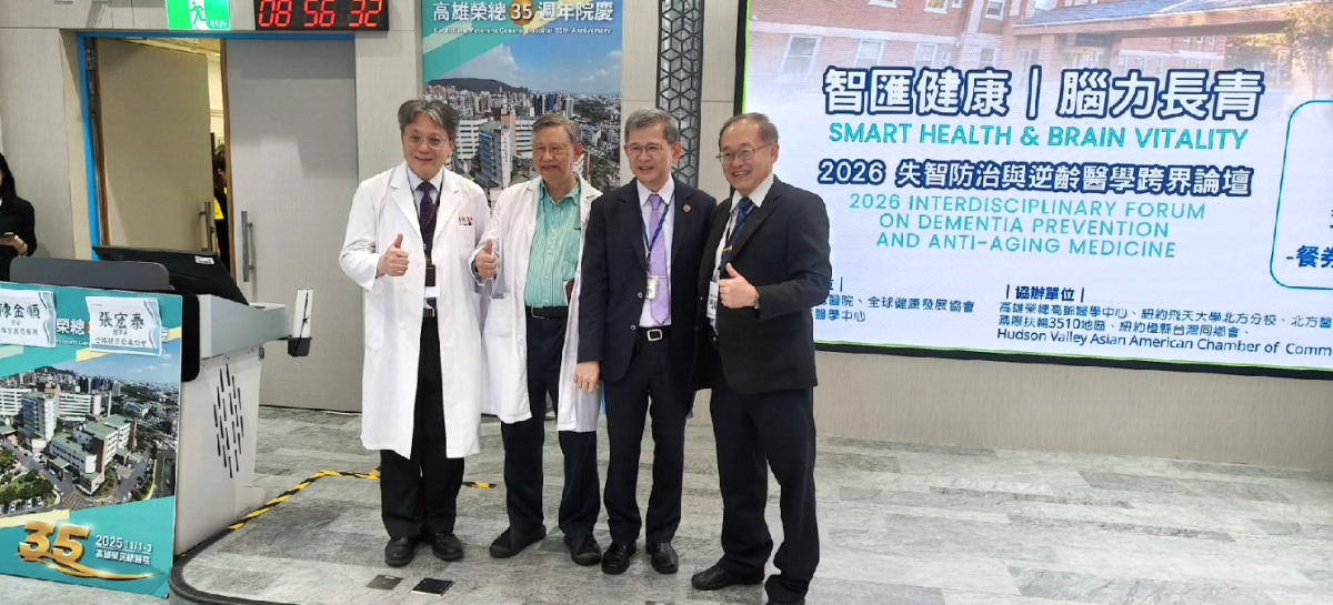 由全球健康發展協會、紐約北方醫學中心及高雄榮民總醫院共同主辦的「2026失智防治與逆齡醫學跨界論壇」,4月11日於高雄榮總舉行,以「智匯健康|腦力長青」為主軸,集結醫學、營養、科技與傳統醫學專家,探討失智預防與健康老化。