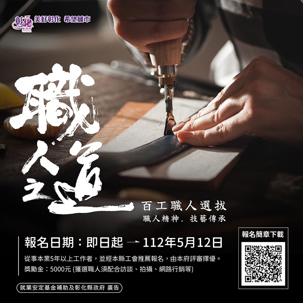 三、「挺」技能-百工職人選拔活動:為展現本縣工會技職人才素養及勞動價值,鏈結在地產業資源,將選拔出8位優秀職人,獲選職人可獲5,000元獎勵金,並拍攝紀錄影片及製作電子書行銷宣傳,報名至5月12日截止。