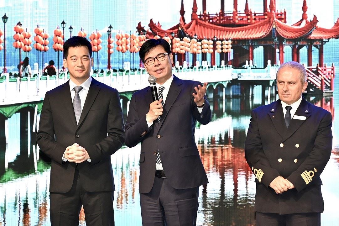 2023/05/29 出席歌詩達莎倫娜號郵輪見面會 陳其邁:郵輪靠掛高雄可望突破4成,歡迎民眾前來體驗郵輪旅程