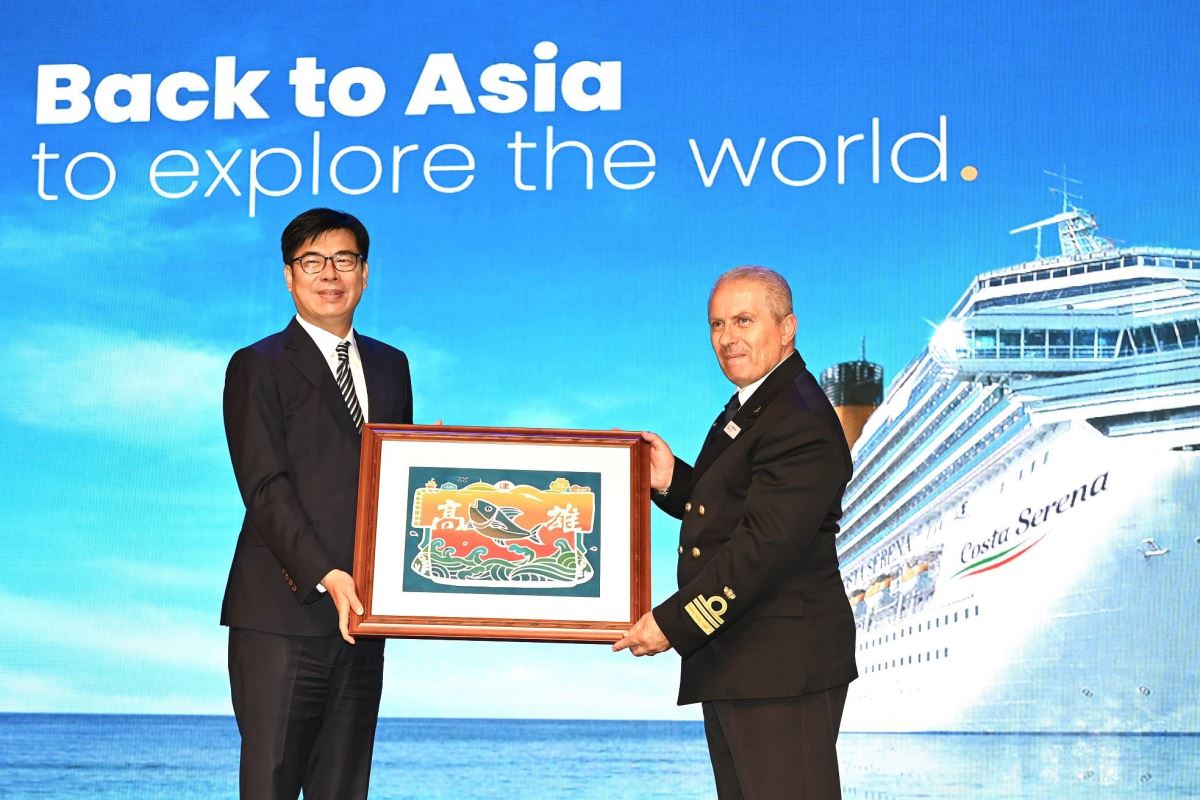 隸屬全球最大郵輪集團嘉年華旗下之「歌詩達莎倫娜號」郵輪,即將在中秋及國慶連假自高雄港首航前往日本,市長陳其邁(28)出席郵輪見面會時表示,過去台灣郵輪多數靠掛基隆港,今年靠掛高雄可望超過4成,為高雄帶來大量觀光客,並提供南部鄉親更多旅遊選擇。陳其邁指出,隨著疫情解封,許多台灣旅客喜好前往日本旅遊,這次歌詩達莎倫娜號以高雄作為母港,共推出3個航次,包括宮古、石垣及那霸,約1萬3千位名額,提供民眾不同旅遊體驗。陳其邁說明,推動郵輪觀光是市府主要政策,感謝歌詩達公司看好中南部旅客消費力,選擇高雄做為母港,未來包括補給、維修、購物、娛樂、消費,以及岸上觀光旅遊等,都會在高雄進行,對於高雄住宿、觀光等產業,可望帶來大量觀光收益。他笑稱,能當一位四海遊俠隨船的航線環遊世界是令人心動的事,因時間每次僅能參加啟航或出港記者會,相當可惜,這次航線可直接從高雄上船、欣賞著美麗福爾摩莎並到日本跳島旅行,實在是非常羨慕。記者會現場雙方互贈紀念品,船方提供船隻模型,市府也回贈具有高雄漁業海洋意象的山津塢「風呂敷」大魚旗,寓意航航滿載、必定豐收,也期盼旅客和郵輪業者喜愛高雄在地優質的農漁特產,享受高雄的美好。隨後雙方舉杯慶祝,預祝未來帶來更多旅客,提供更好旅遊體驗。海洋局說明,歌詩達郵輪集團來自全球最大郵輪公司「嘉年華集團」旗下,以經典古羅馬神話風格華麗打造,重達11.45萬噸、載客數量高達3,780人。台灣過去是亞洲第二大郵輪客源市場,「歌詩達莎倫娜號」郵輪,為疫情後最早登記靠港高雄的郵輪,歡迎民眾提早規劃中秋及國慶連假假期,提前來高雄住一晚,再搭乘郵輪前往日本度過愉快連假。