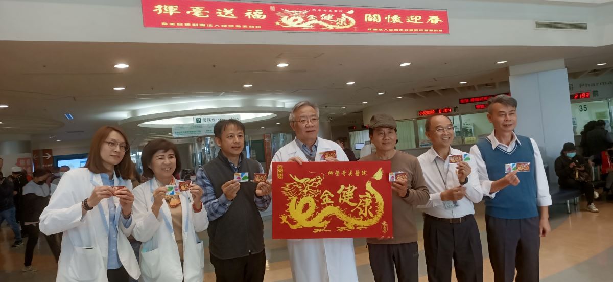 黃順賢院長表示,2024年是象徵吉祥的金龍年,也是柳營奇美醫院邁向20周年的重要里程碑,「走入社區,深耕在地」一直是本院發展的目標與方向,因此我們積極推動溪北地區各鄉鎮的衛教講座、社區健康營造、疾病篩檢、健康檢查等,逐步提升民眾自我健康管理的能力,以及養成良好的生活習慣。此次關懷活動,是本院首次以生肖龍年發行金龍悠遊卡,係由吳福山老師繪製以龍為主體的「龍金健康」圖騰,除了取台語諧音祈祝大家身體健康的含意之外,也可用來搭乘大眾運輸工具、買東西及支付復健療程部分負擔費,落實節能減碳及綠色環保的理念,具有結合創意名家墨寶與實用紀念價值。