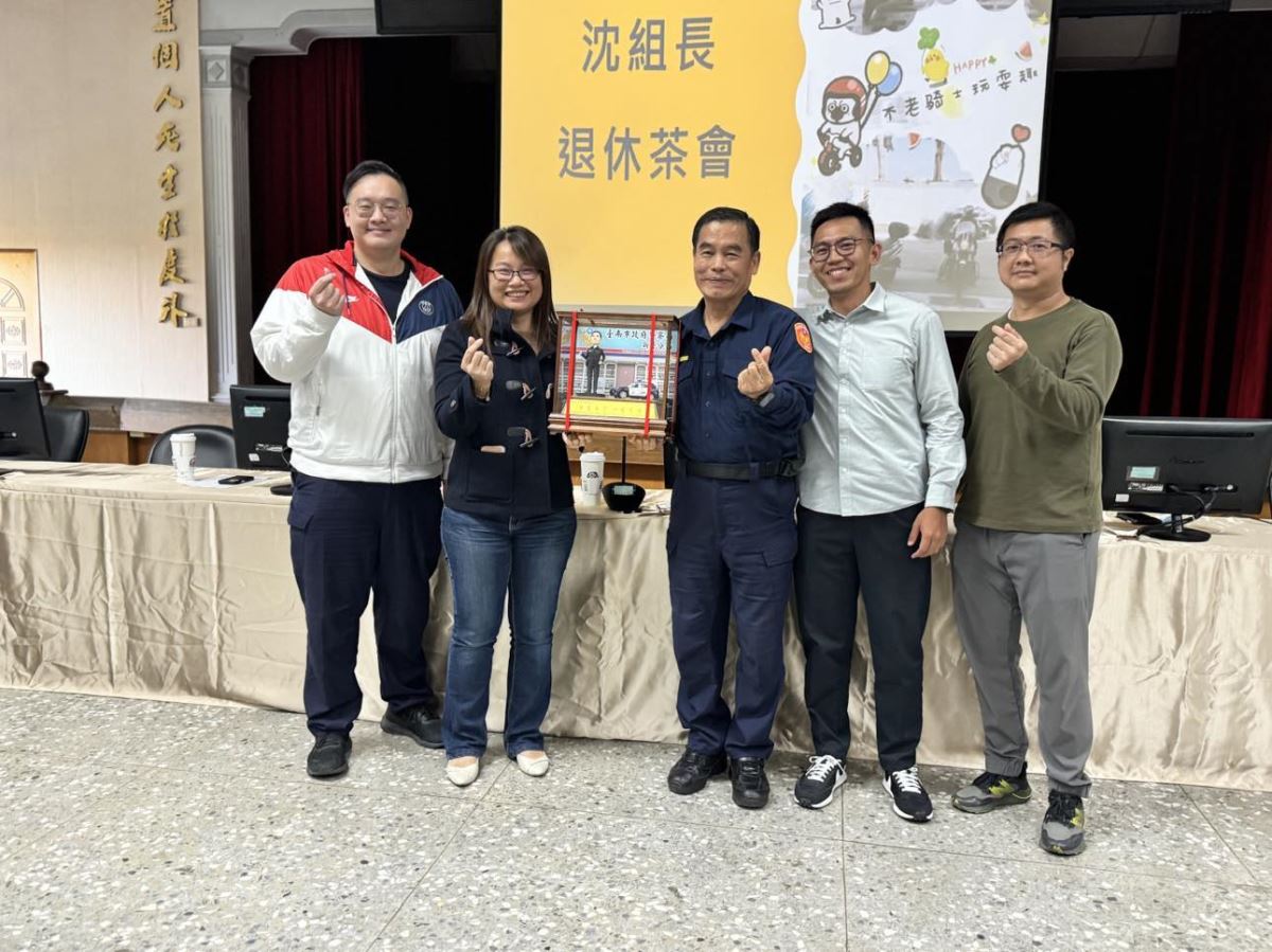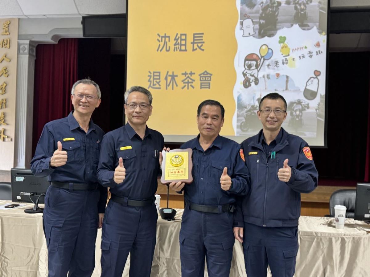 分局長顏勤峰表示,沈組長穿過3套不同樣式的警察制服,也拿過3種款式的警用手槍,歷經各次警政制度變革,可以說是警界活字典,人生的智慧與精華都是大家學習的典範,歡迎日後時常返回分局,繼續關心、鼓勵工作崗位上的後輩,也衷心祝福沈組長退休生活愉快、平安順遂。