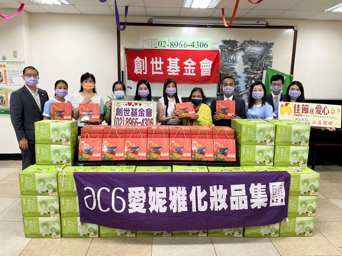 創世板橋安養院因疫情,家屬僅能透過視訊探視,無法與家人相聚。愛妮雅化妝品集團特別來到板橋院,捐助10萬元認助「暖心月餅禮盒」及「柚子禮盒」送給弱勢植物人家屬並支持植物人常年安養經費,希冀在這艱困的疫情期間,讓植物人家庭感受佳節氣氛。